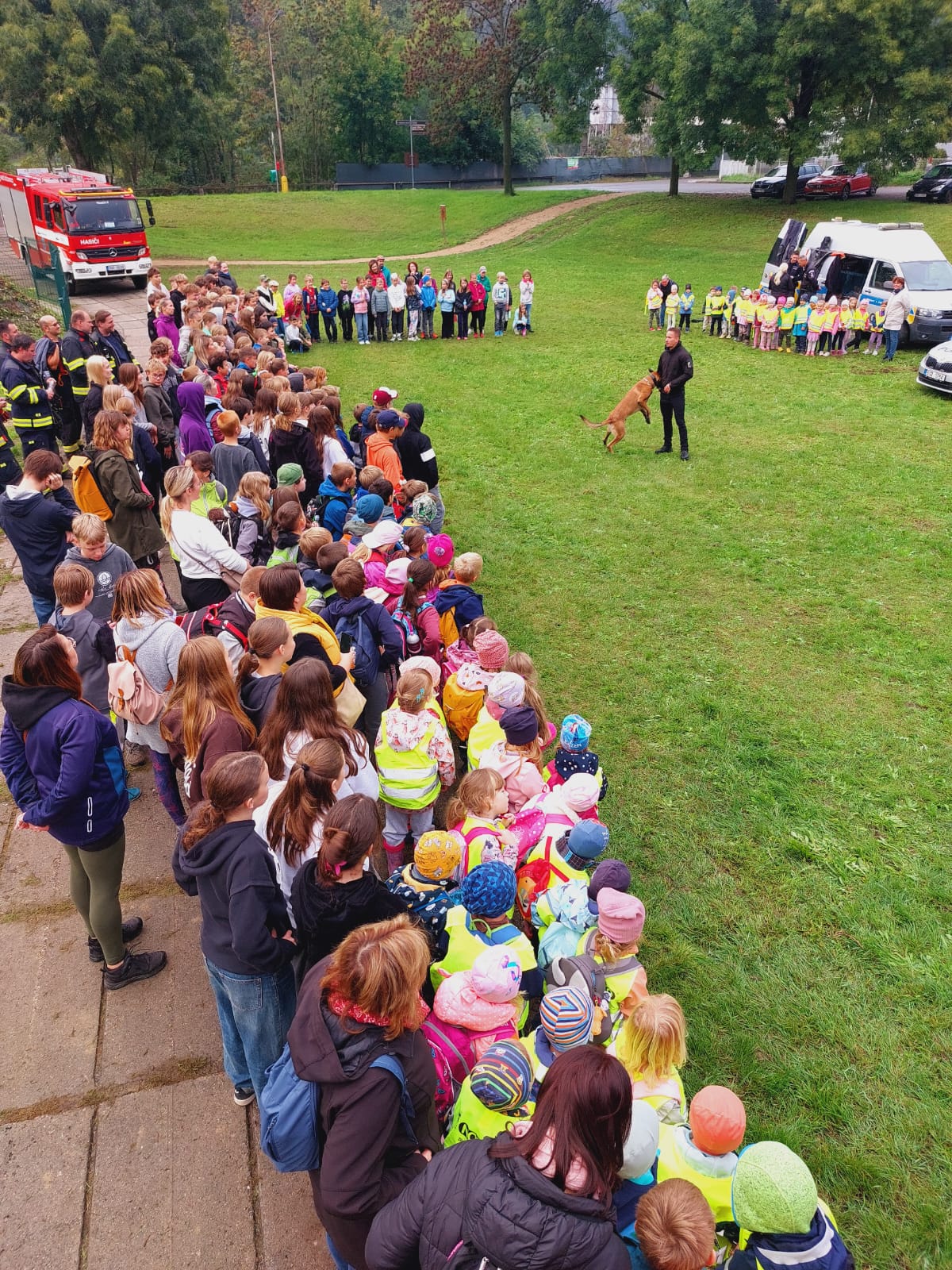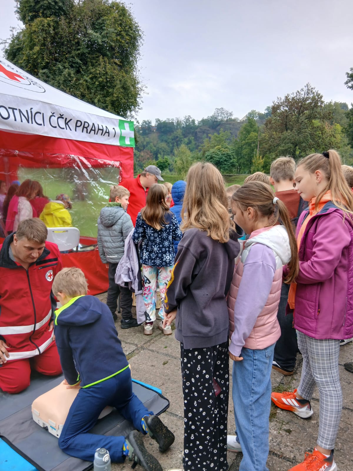 Po skončení evakuačního cvičení se program přesunul do parku U Kocáby, kde děti čekalo pestré dopoledne plné ukázek a zážitků. Viděly výcvik policejního psa, práci záchranářů Českého červeného kříže i Zdravotnické záchranné služby Středočeského kraje. Měly možnost nahlédnout do sanitek a hasičských vozů, dozvědět se více o práci státní i poříční policie a klást otázky přímo záchranářům.