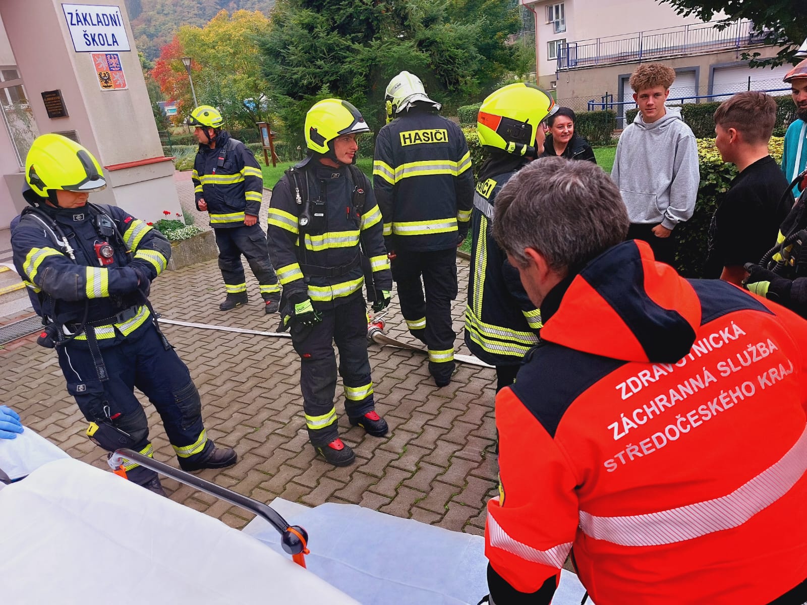 Dnes proběhl na naší škole nácvik evakuace v rámci Dne integrovaného záchranného systému (IZS), který pořádal městys Štěchovice ve spolupráci se školou a složkami IZS z širšího okolí. Do akce se zapojili žáci, učitelé i celý personál školy. Simulace požáru, záchrany raněných a evakuace osob ukrytých před ohněm proběhla hladce a byla hodnocena na výbornou.