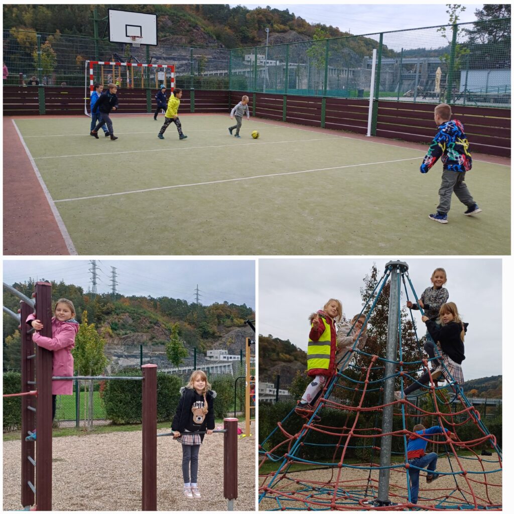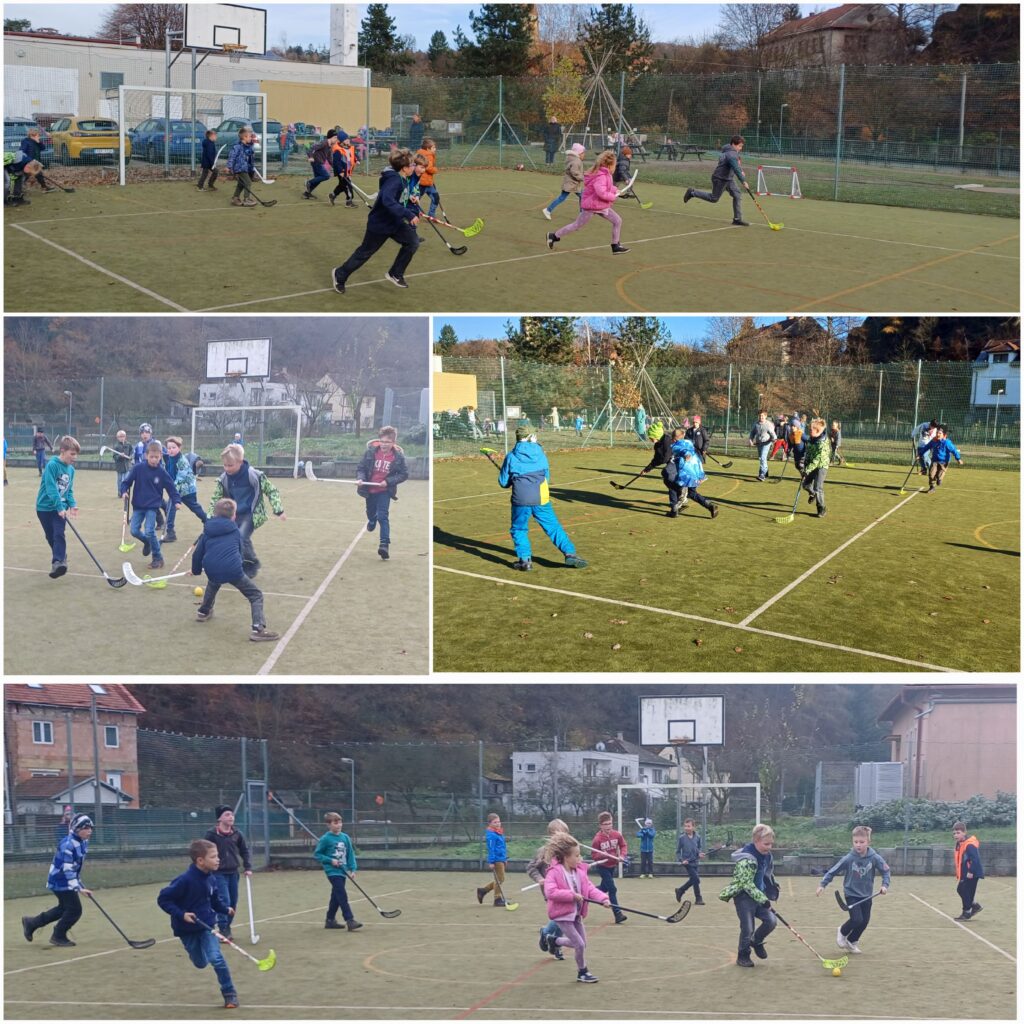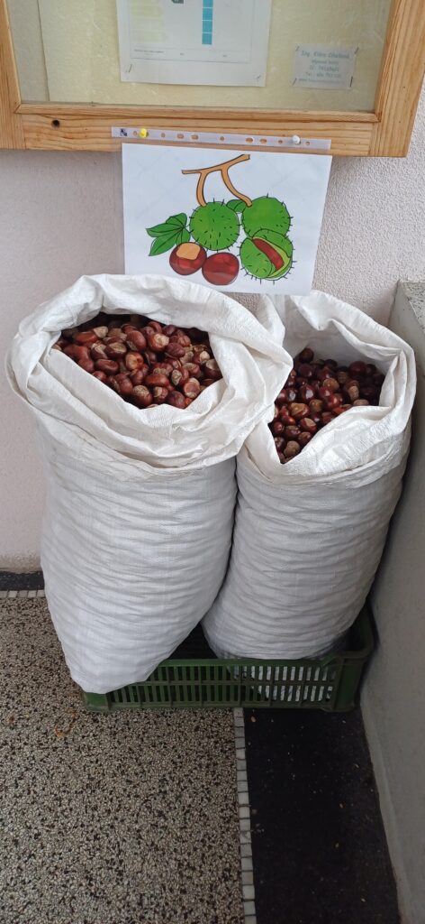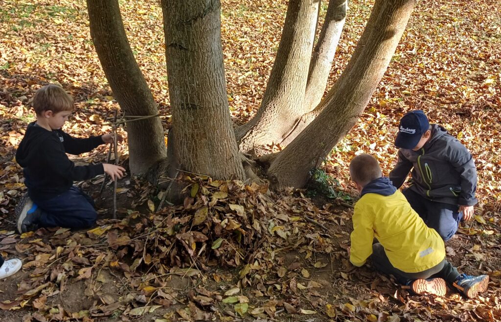 Říjen jsme zahájili jako každoročně sběrem kaštanů, kterých děti donesly celkem 120 kg. Ty jsme předali myslivcům pro zvířatka a některé použili na vyrábění. Čtvrteční vycházky nejčastěji směřovaly do lesa, kde si děti postupně dodělávaly domečky a bunkry z přírodnin. Na školním hřišti jsme k fotbalu a vybíjené přidali i florbal, který si oblíbili zejména chlapci. V listopadu jsme udělali náš tradiční ohýnek a opékali buřtíky.