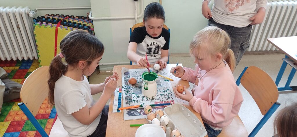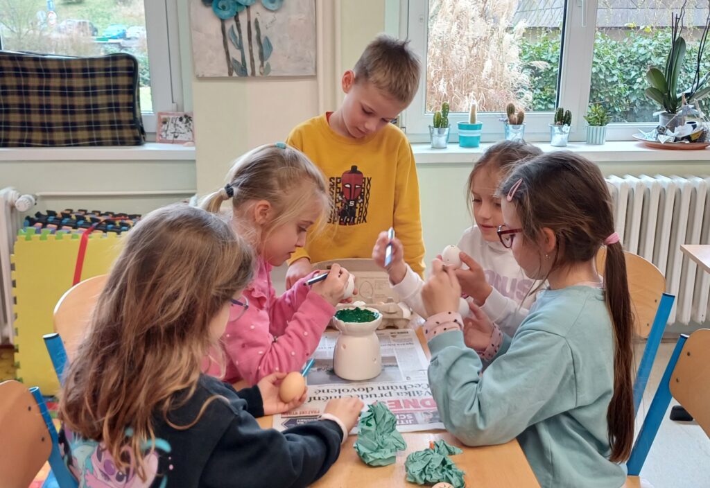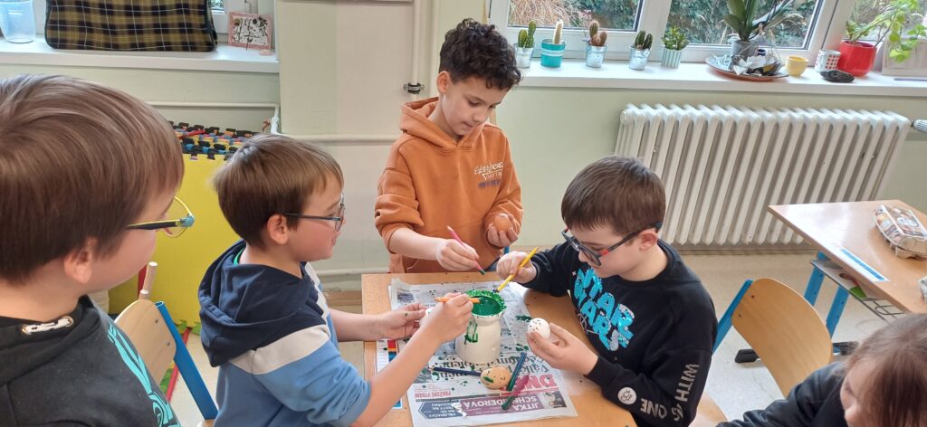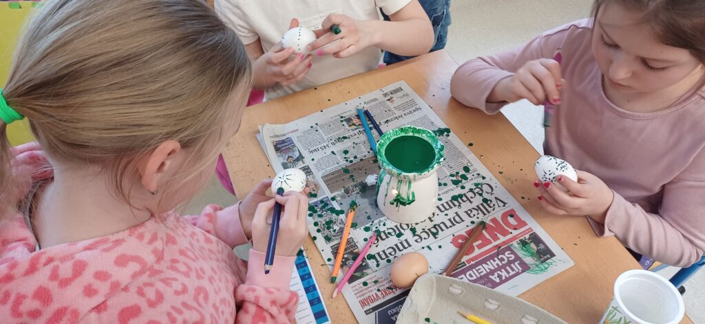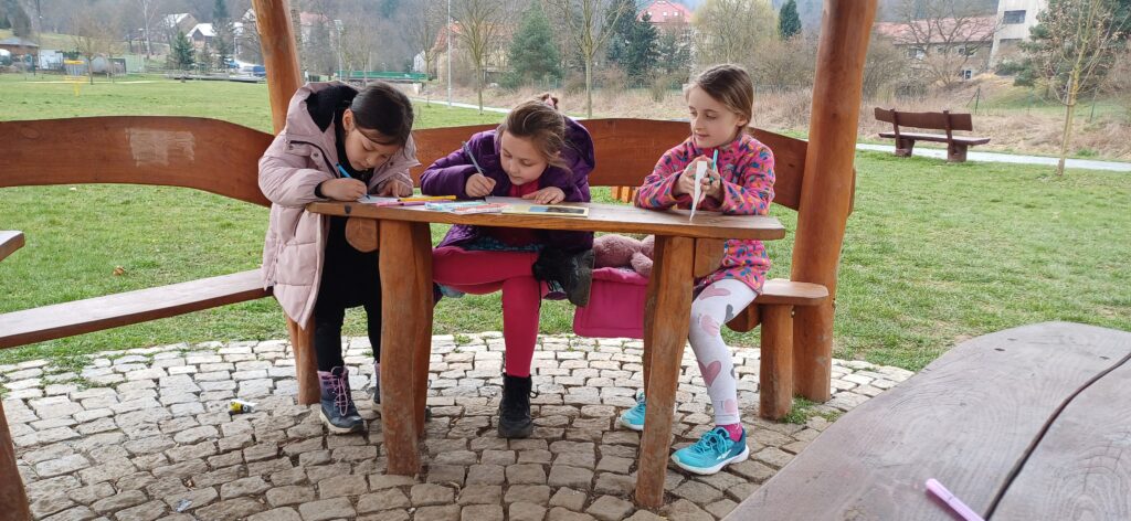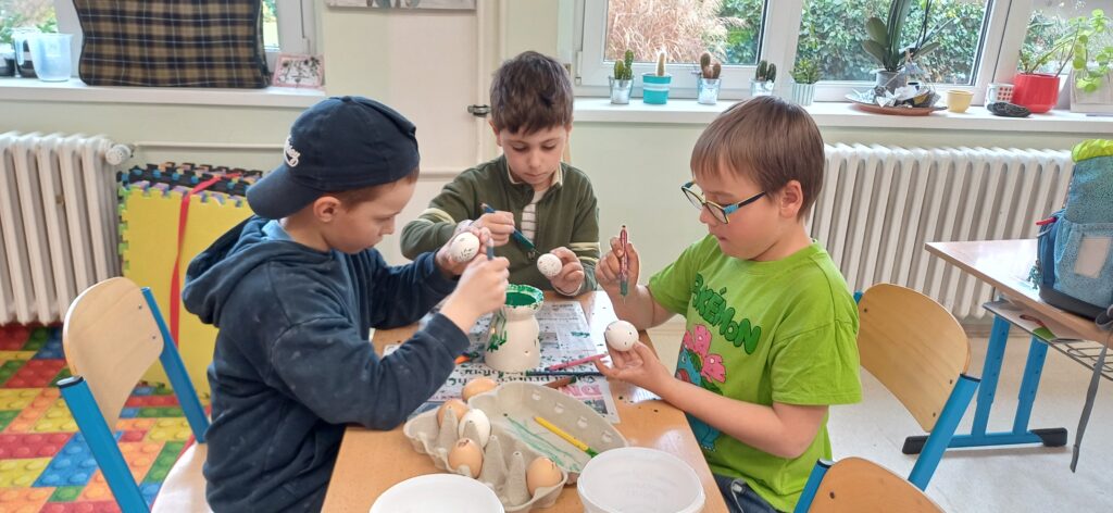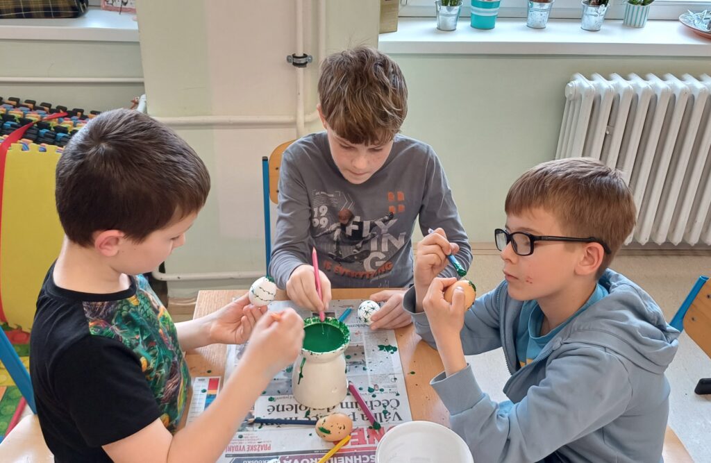 V období před Velikonocemi pekly děti jidáše, malovaly vajíčka voskem, tvořily beránky z vlny a připomněly si tradiční zvyky. Navštívili jsme místní knihovnu v MFC, kde se nám věnovala paní Lucie Horniaková. Dětem byl přiblížen chod knihovny, společně vytvořily vlastní pohádku a zahrály hru. Na cestě do parku opakovaně potkáváme nutrii, která děti vždy potěší.