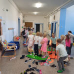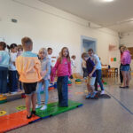 V dalších hodinách s děti vyzkoušely práci s interaktivní tabulí a o přestávkách si mohly aktivně odpočinout na našem vnitřním „hřišti“,