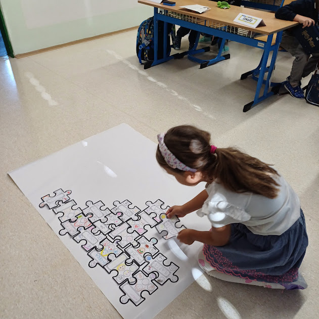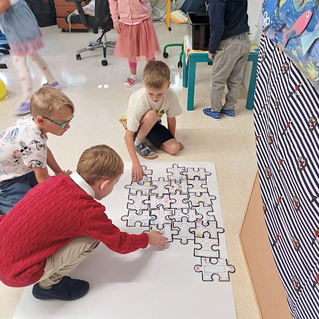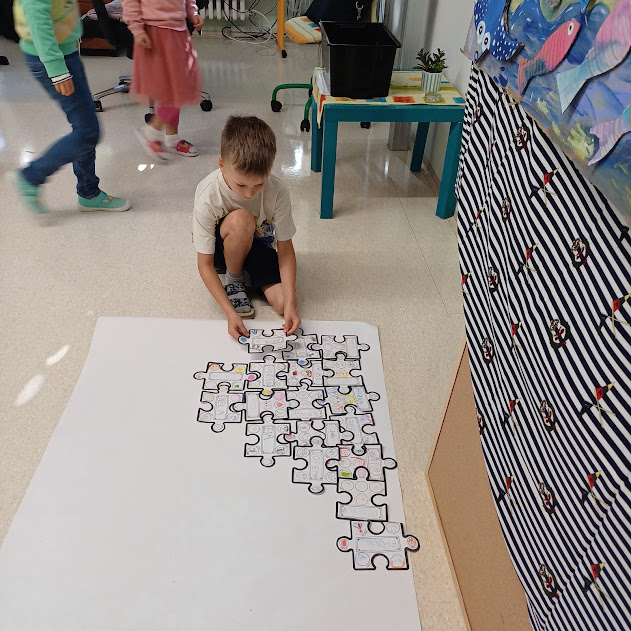 Velkou radost nám dnes udělala spolupráce s žáky 5. třídy paní učitelky Beránkové. Společně jsme si zahráli komunikační hru, při které se děti lépe poznaly, a na závěr nám páťáci věnovali krásné lístečky s obrázky pro každého prvňáčka.
