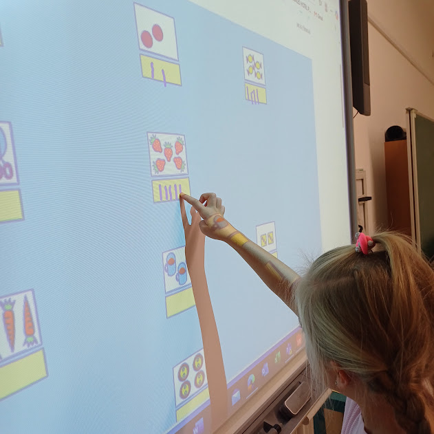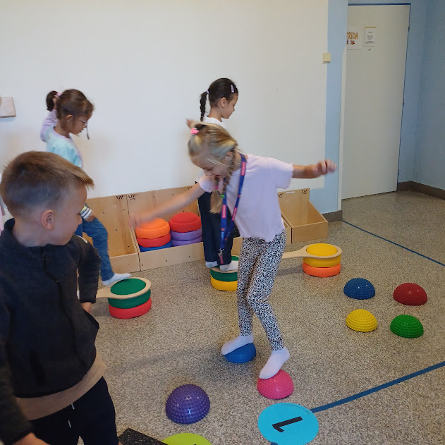 V dalších hodinách s děti vyzkoušely práci s interaktivní tabulí a o přestávkách si mohly aktivně odpočinout na našem vnitřním „hřišti“,